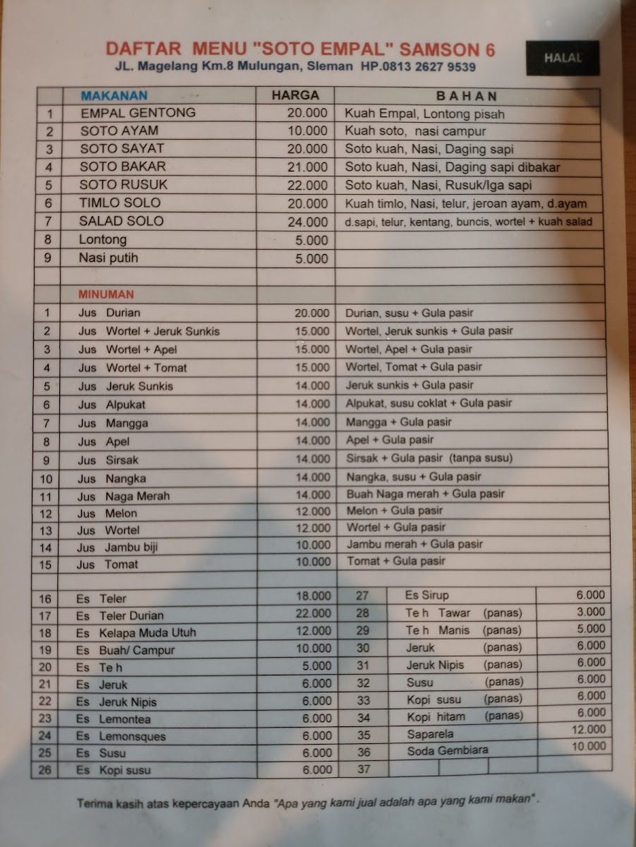 “ I gotta admit that FOR ME, there are NO better taste of bakso in Yogyakarta other than this. They claimed to be MSG free however the taste can still be maintained. The place is not that special, but still acceptable, cleanliness is also good. Maju terus Bakso Samson... ”
